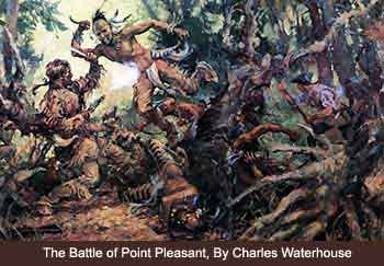 Francis and the other Virginia militiamen marched all the way across present day West Virginia. On October 8, 1774, they arrived at a site known as Point Pleasant at the conjunction of the Ohio and Kanawha Rivers. The next night an estimated 600 - 700 Indians had crossed the Ohio river in over 70 rafts without being observed. The next morning, they attacked the Virginia militia at Point Pleasant, expecting to win a quick victory. That was not to be. The battle lasted all day and included up-close, hand-to-hand fighting. Colonel Fields was killed early in the fighting.