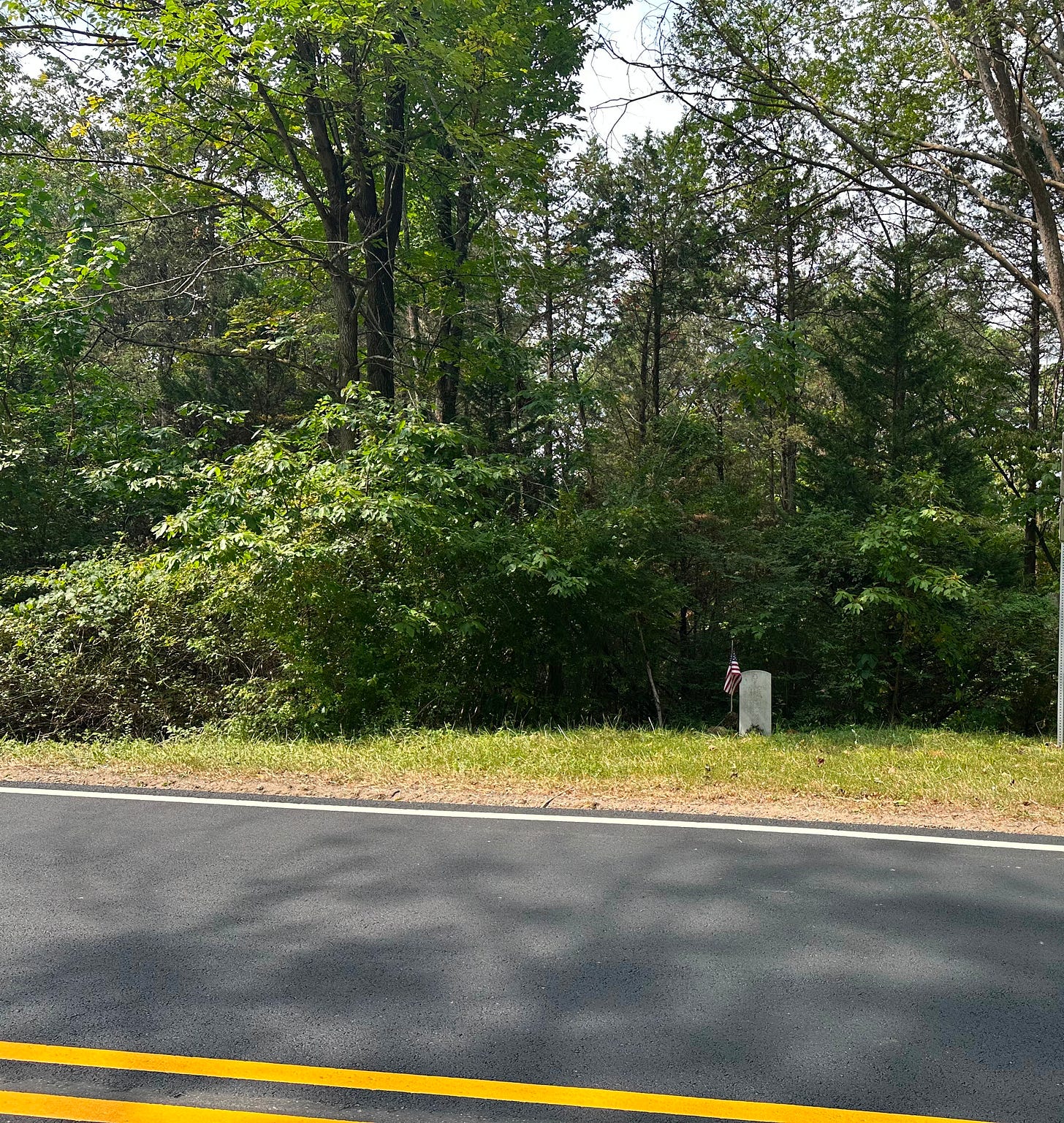 As I was driving along a rural road in Culpeper County, Virginia I had the good fortune to stumble upon an intriguing piece of American history. I spotted what appeared to be a veteran-type headstone marked with a U.S. flag. Here is a view from the road.